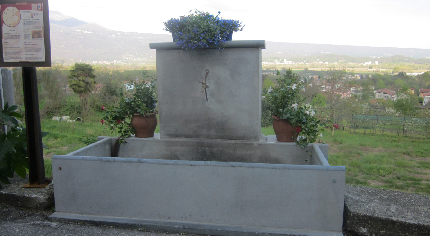 La fontana S. Giuseppe attinge dal sistema di condotta d’acqua del progetto di Giovanni Ferrando ma fu costruita nel 1889 per volontà degli eredi del Conte Cagnis, i quali lamentavano l’assenza di una fonte in prossimità del Castello. La fontana originaria, andata perduta, è stata sostituita circa un secolo dopo da quella oggi presente, composta da una vasca in diorite della Valchiusella e da un pilone contenente l’impianto idraulico.